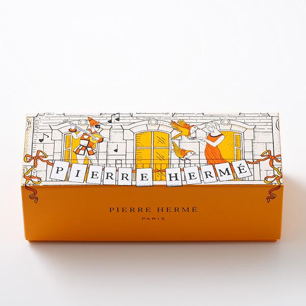 洗練された珠玉のお菓子。バレンタインに合わせて、ブラジル・パイネイラス農園産純正チョコレートに対するオマージュが込められた「アンフィニマン ショコラ パイネイラス」や爽快感あふれるカシスと力強いビターチョコレートの「チュアオ」など、チョコレートフレーバーを中心に6種6個を詰め合わせました。イラストレーター、ジュリー・セールによるパリの雰囲気に満ちた夢のようなシーンが描かれた限定BOXでご用意いたします。